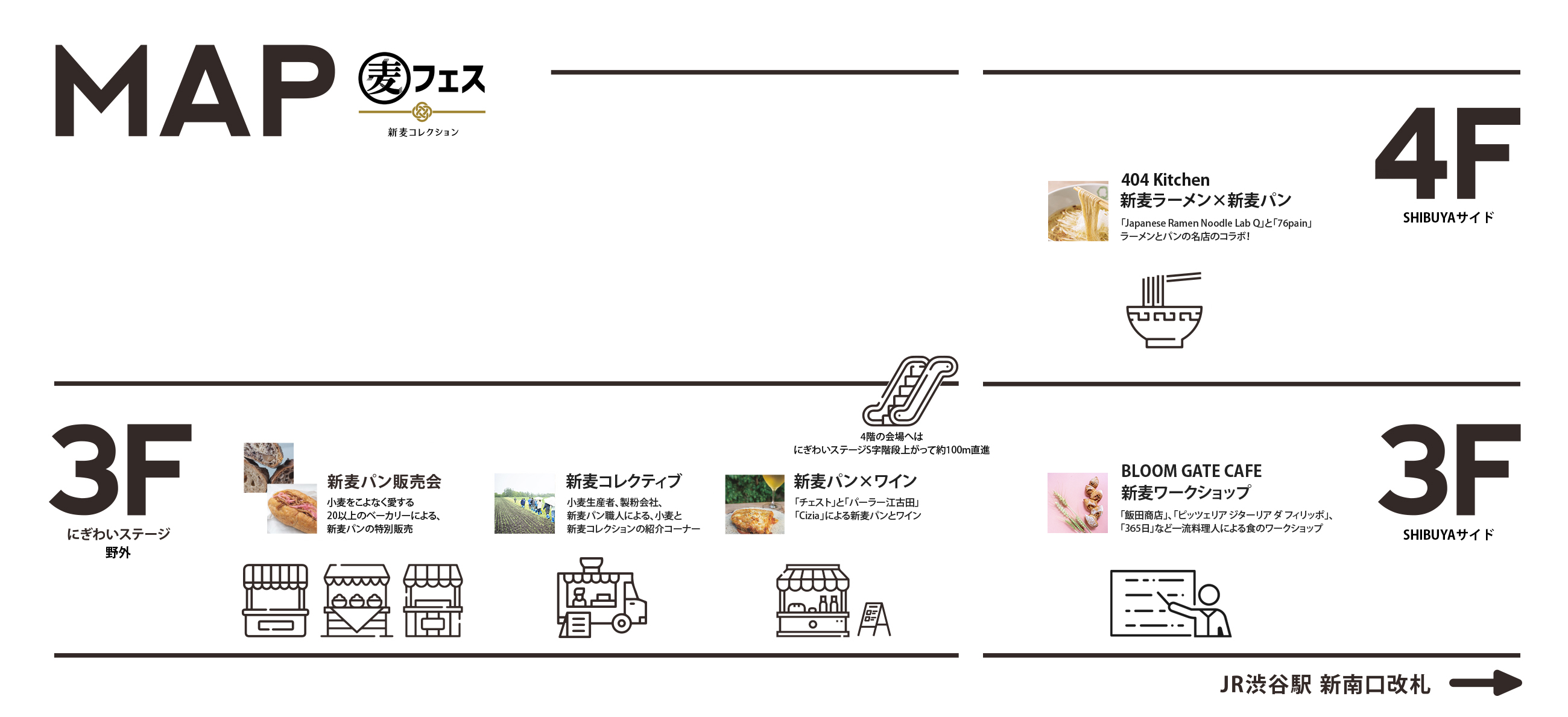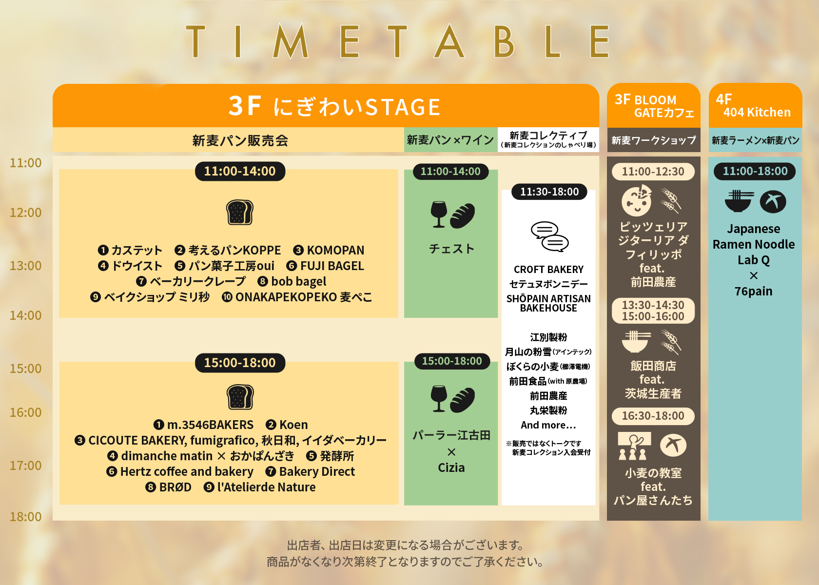 ※ 新麦パン販売会は10:30、14:30より入場待機エリアを設置いたします
